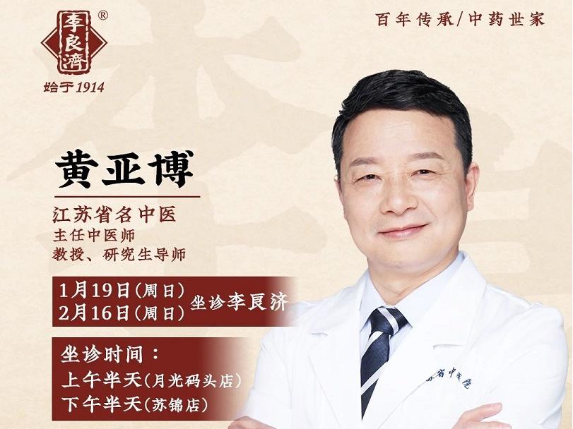 2月16日,江蘇省名中醫(yī)黃亞博主任,將坐診李良濟,文中可直接掛號預(yù)約