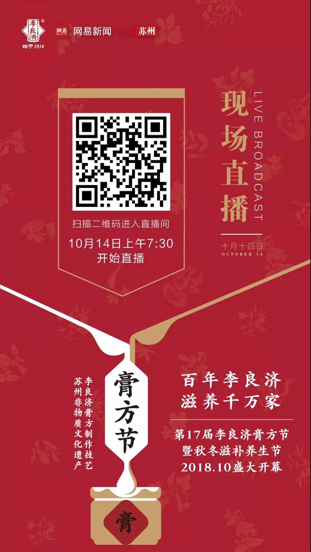 值得關(guān)注的還有,今年膏方節(jié)開幕網(wǎng)易新聞全程現(xiàn)場(chǎng)直播,不在現(xiàn)場(chǎng)的小伙伴們,可以通過觀看視頻直播來了解哦!(掃一掃下方二維碼觀看,錯(cuò)過了直播還可以觀看回放哦!)